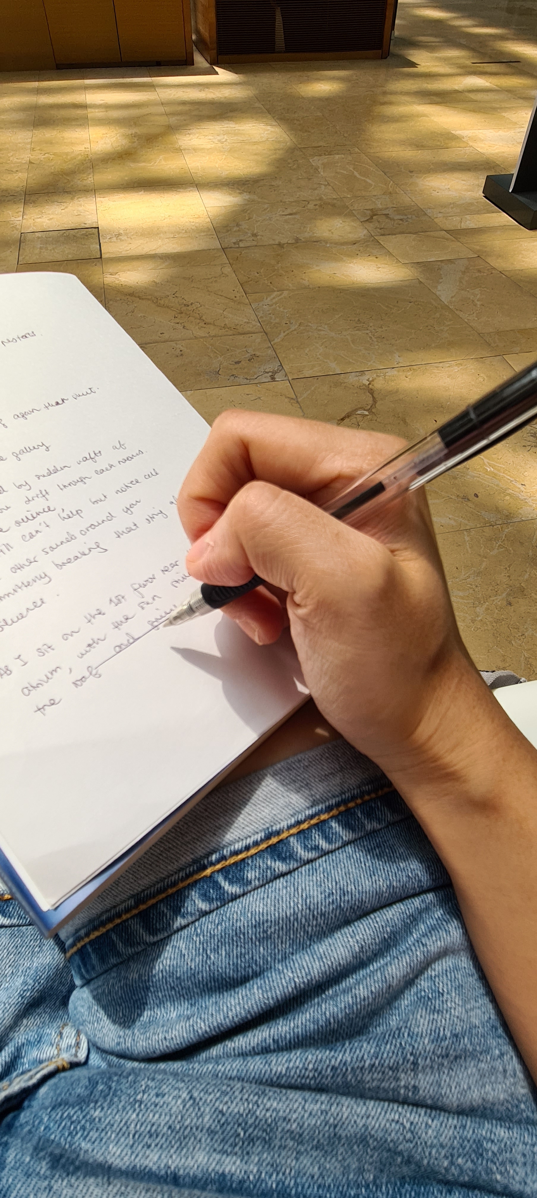 I sit on the 1st floor near the Padang Atrium of The Gallery, with the sun shining through the roof; casting a short shadow over me as I write this:-